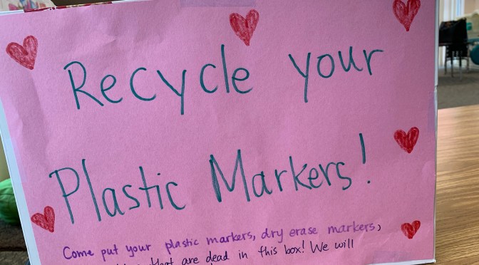 It was great to see the students so interested in recycling, community projects, and making a difference in the world! If you have any dead markers/dry erase markers/highlighters at home and would like to bring them in to add to our recycling box, please do so! The box will be at school for a few months, so there is plenty of time to keep adding to our box.